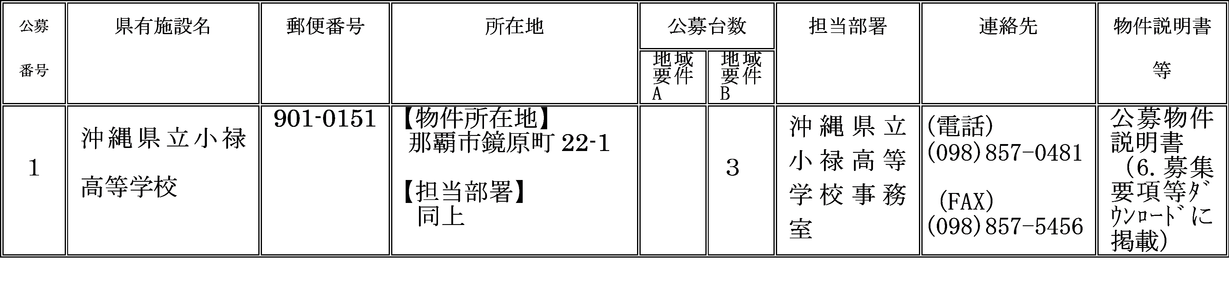 沖縄県立小禄高等学校事務室に直接申し込んでください。(受付時間は公募物件説明書に記載あり)
